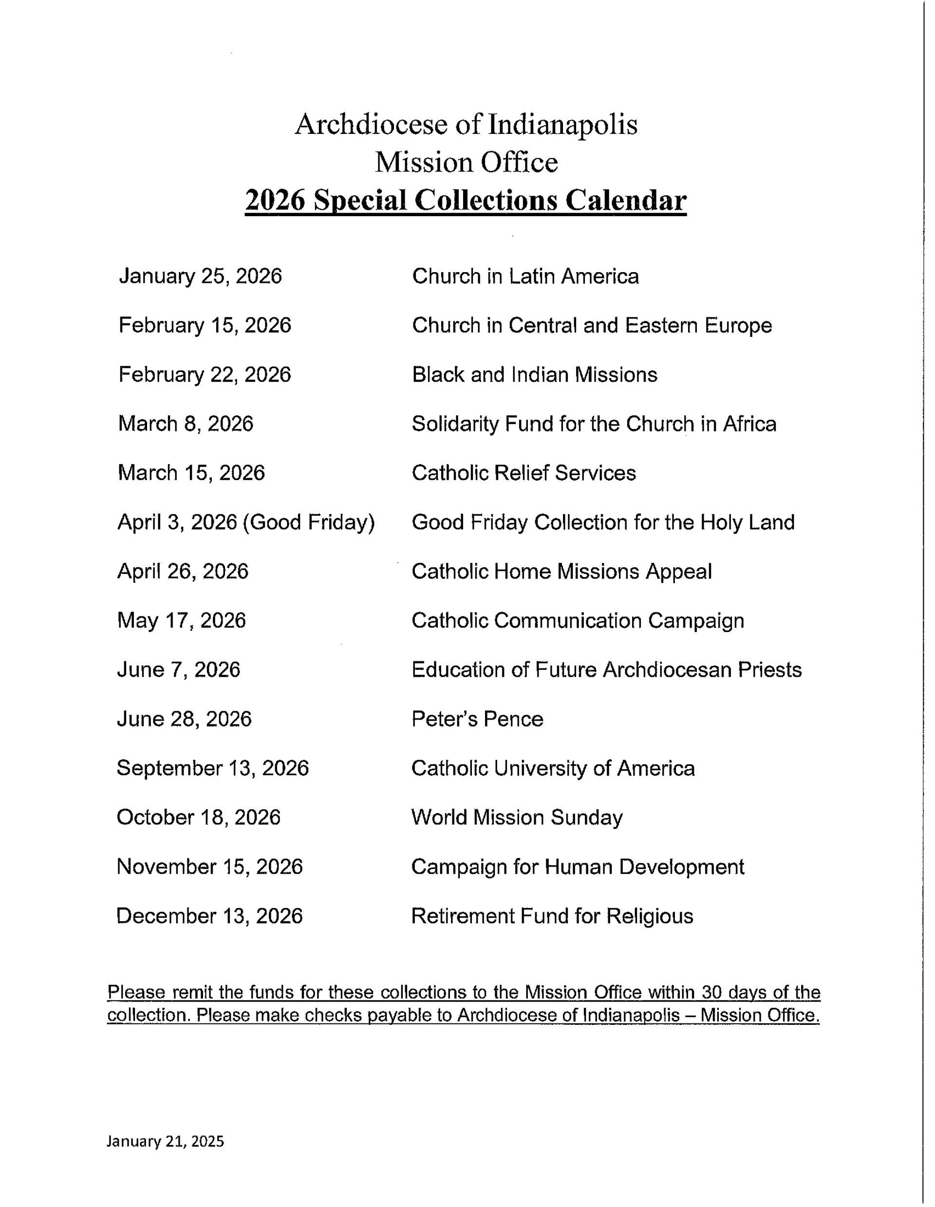 St. Anthony parishioners demonstrated stewardship beyond our Parish and local community through many special collections throughout the year.