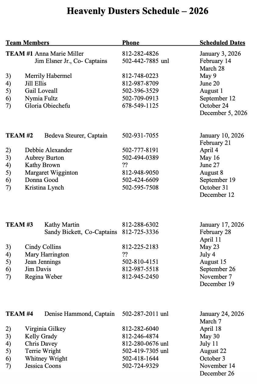 Heavenly Dusters Schedule